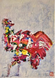 04/22 „HAHN“, Acryl und Acryllack auf Baumwolle, weiß übermalt, 35x50cm