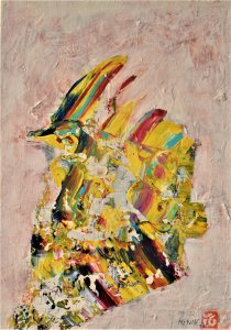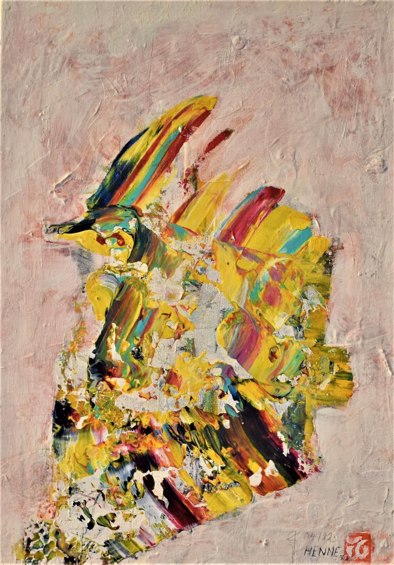 04/22 „HENNE“, Acryl und Acryllack auf Baumwolle, weiß übermalt, 35x50cm