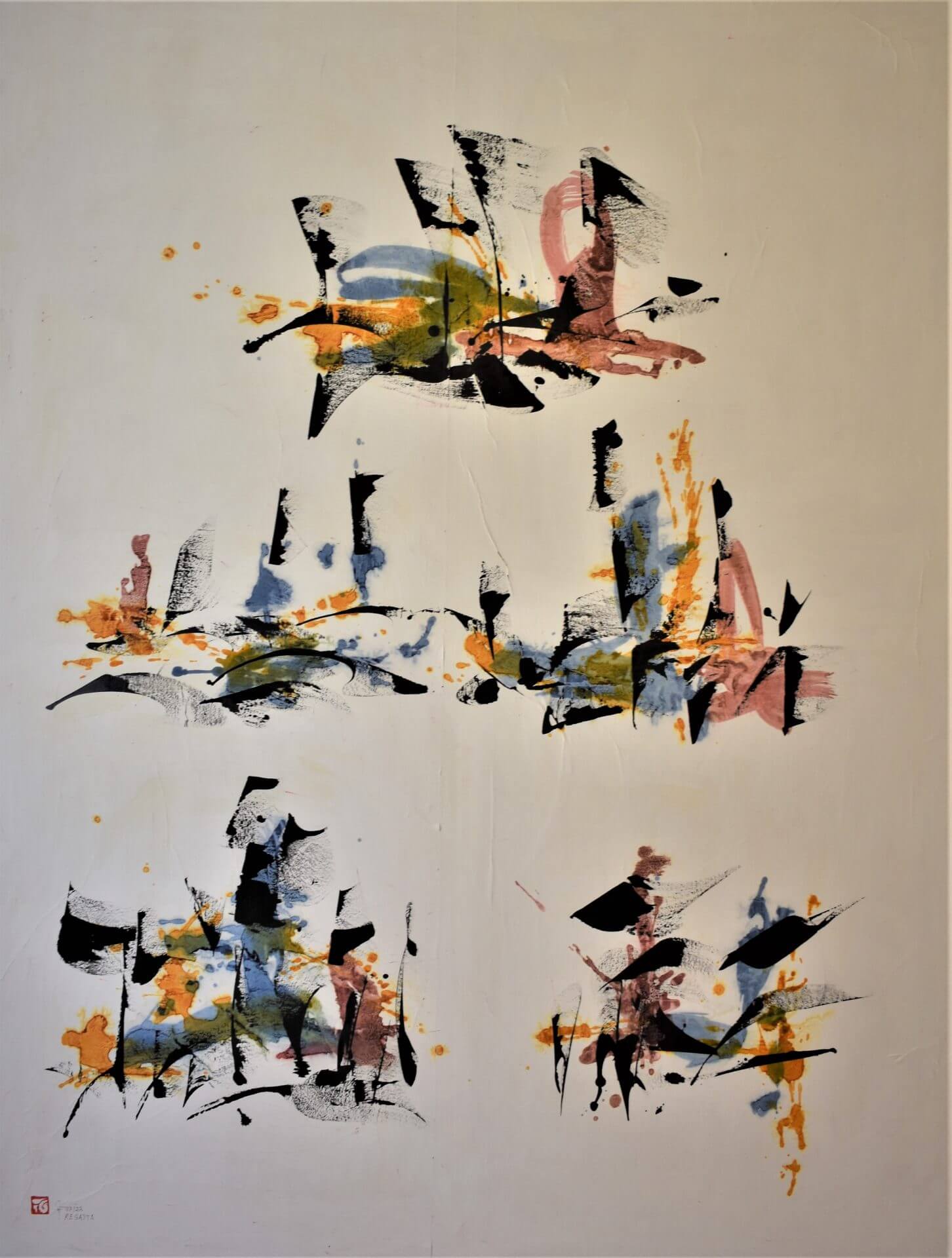 „REGATTA“ 07/22 „REGATTA“, Chinatusche und Batikfarben auf Reispapier, auf weiß grundierte Leinwand geleimt, 170x130cm