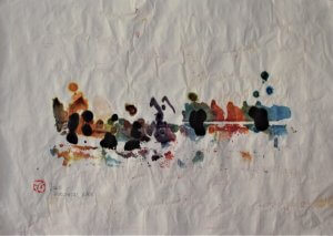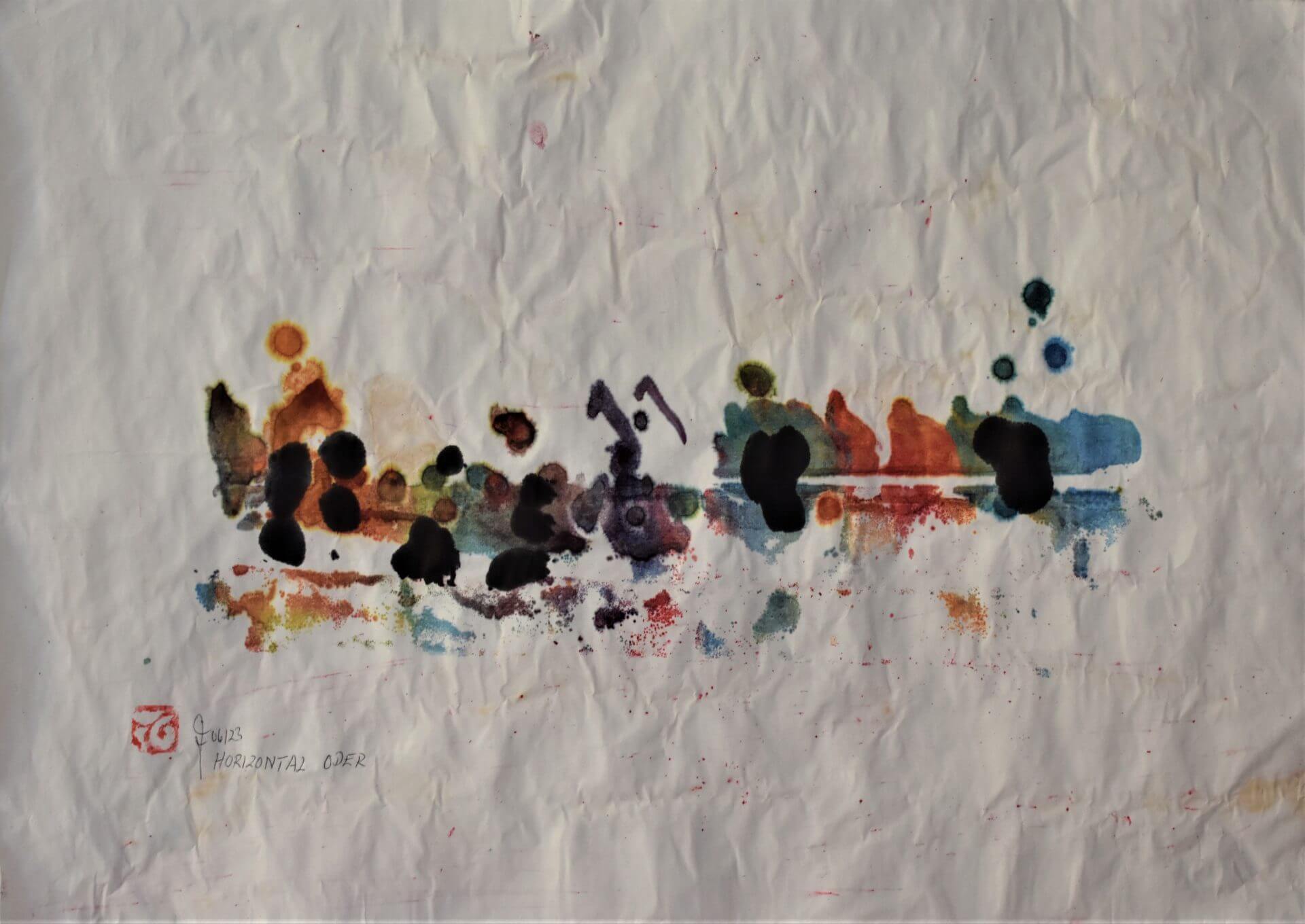 „HORIZONTAL ODER II“ 06/23 „HORIZONTAL ODER II“, Chinatusche und Batikfarben auf Reispapier, auf Reispapier geleimt, 68x48cm