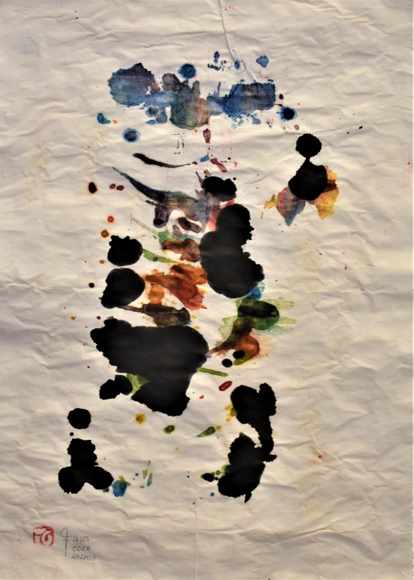 „ODER HIMMLISCH“ 06/23 „ODER HIMMLISCH“, Chinatusche und Batikfarben auf Reispapier, auf Reispapier geleimt, 48x68cm