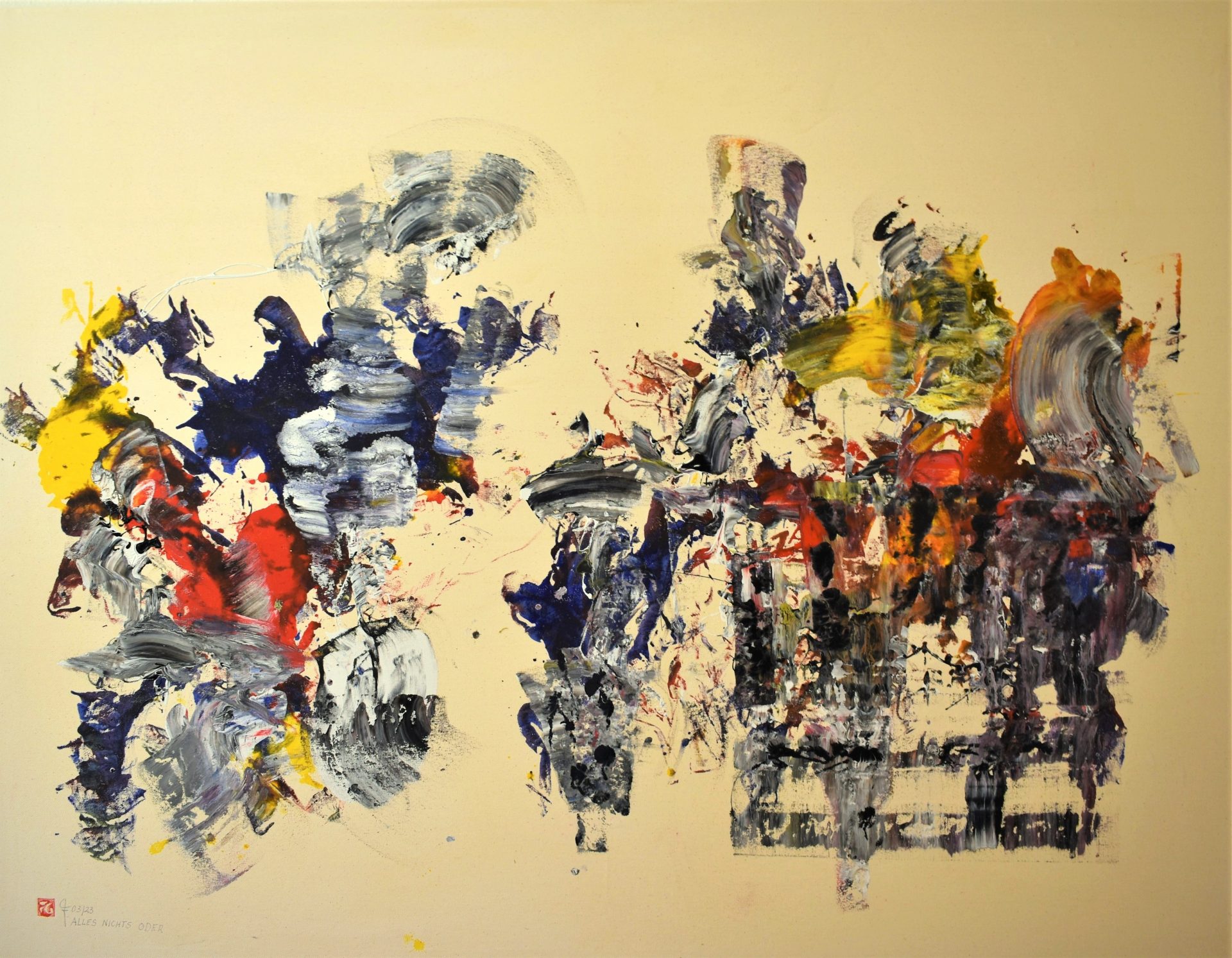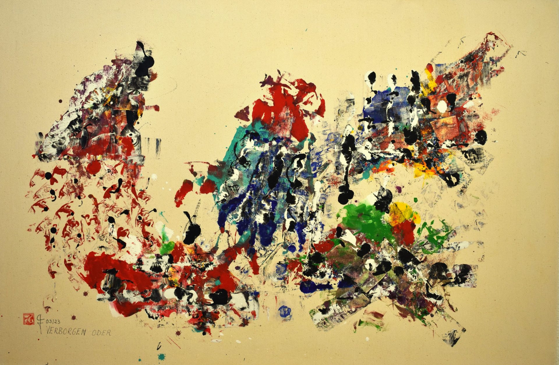 01/24 „NEUJAHRSFEST?“, Acryl und Acryllack auf Baumwolle, Pattern aus recycelten Bildern aufgeklebt,145x180cm02/24 „KRIEG UND FRIEDEN?“, Acryl und Acryllack auf Baumwolle, Pattern aus recycelten Bildern aufgeklebt,140x180cm03/23 „WEG ODER“ Acryl und Acryllack auf Baumwolle, 170x130cm03/23 „WIR ODER“ Acryl und Acryllack auf Baumwolle, 170x130cm03/23 „ODER ODER“ Acryl und Acryllack auf Baumwolle, 170x130cm03/23 „ALLES NICHTS ODER“ Acryl und Acryllack auf Baumwolle, 170x130cm03/23 „OFFEN ODER“, Acryl und Acryllack auf Baumwolle, 120x80cm03/23 „VERBORGEN ODER“, Acryl und Acryllack auf Baumwolle, 120x80cm02/24 „DIALOG?“, Acryl und Acryllack auf Baumwolle, Pattern aus recycelten Bildern eingeklebt, 80x120cm03/24 „FRAUENPOWER?“, Acryl und Acryllack auf Baumwolle, Pattern aus recycelten Bildern eingeklebt, 80x120cm02/24 „FU: FLECKEN UNI?“, Acryl und Acryllack auf Baumwolle, Pattern aus recycelten Bildern eingeklebt, 80x120cm01/24 „LOVE & PEACE?“, Acryl und Acryllack auf Baumwolle, Pattern aus recycelten Bildern aufgeklebt, 80x120cm012/23 „ERDMÄNNCHEN ODER“, Acryl und Acryllack auf Baumwolle, Pattern aus recycelten Bildern aufgeklebt, 80x120cm09/23 „FLAMENCO ODER“, Acryl und Acryllack auf Baumwolle, Pattern aus recycelten Bildern aufgeklebt, 80x120cm09/23 „PAARUNG ODER“, Acryl und Acryllack auf Baumwolle, Pattern aus recycelten Bildern aufgeklebt, 80x120cm09/23 „SPIELKARTE ODER“, Acryl und Acryllack auf Baumwolle, 80x120cm09/23 „VERLIEBT ODER“, Acryl und Acryllack auf Baumwolle, 80x120cm