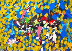 05/22 Ausschnitt aus „GESELLIG“, Acryl, Acryllack auf Baumwolle, 170x130cm (Original anklicken & vergrößern)