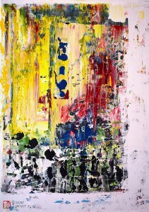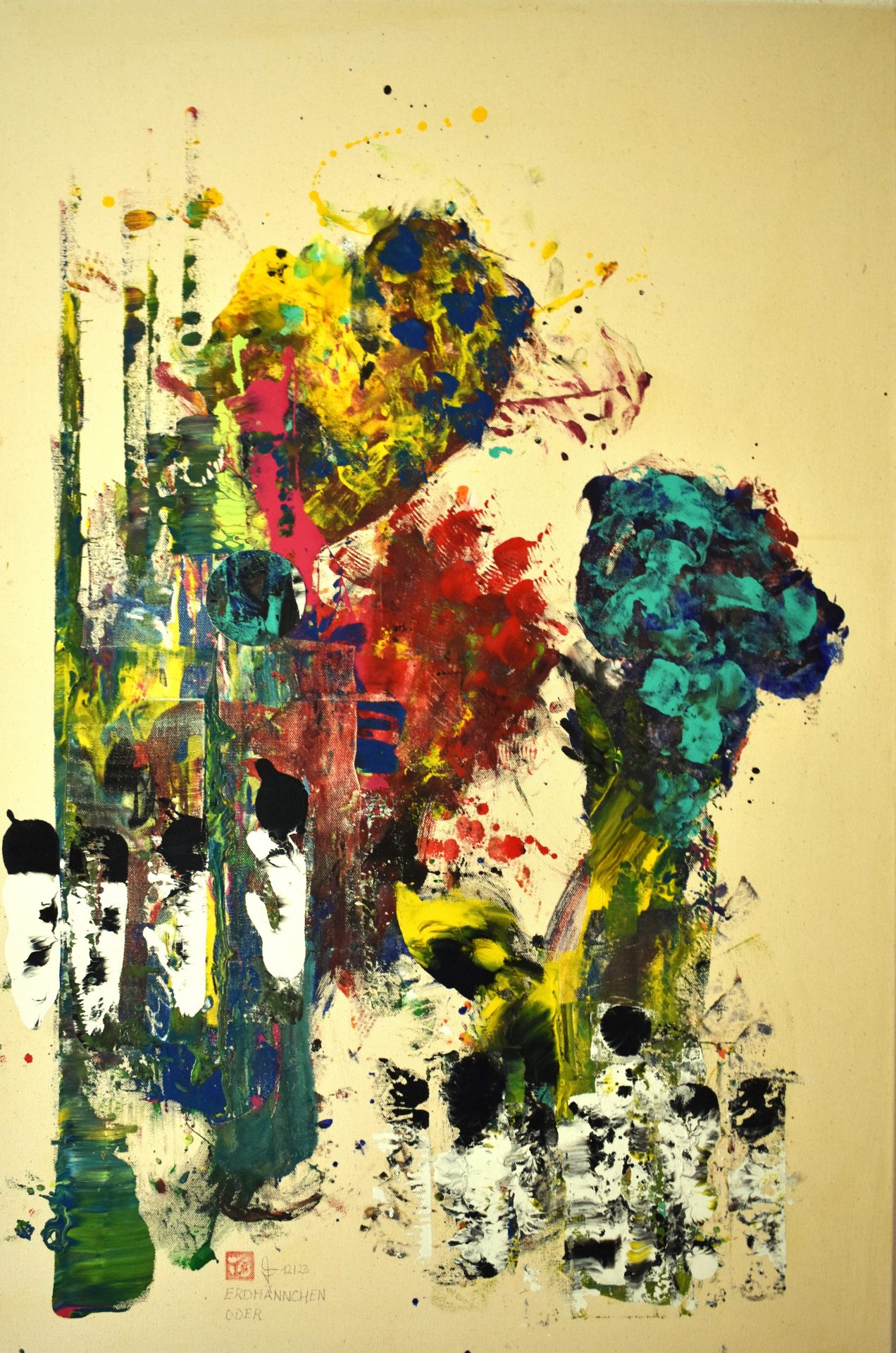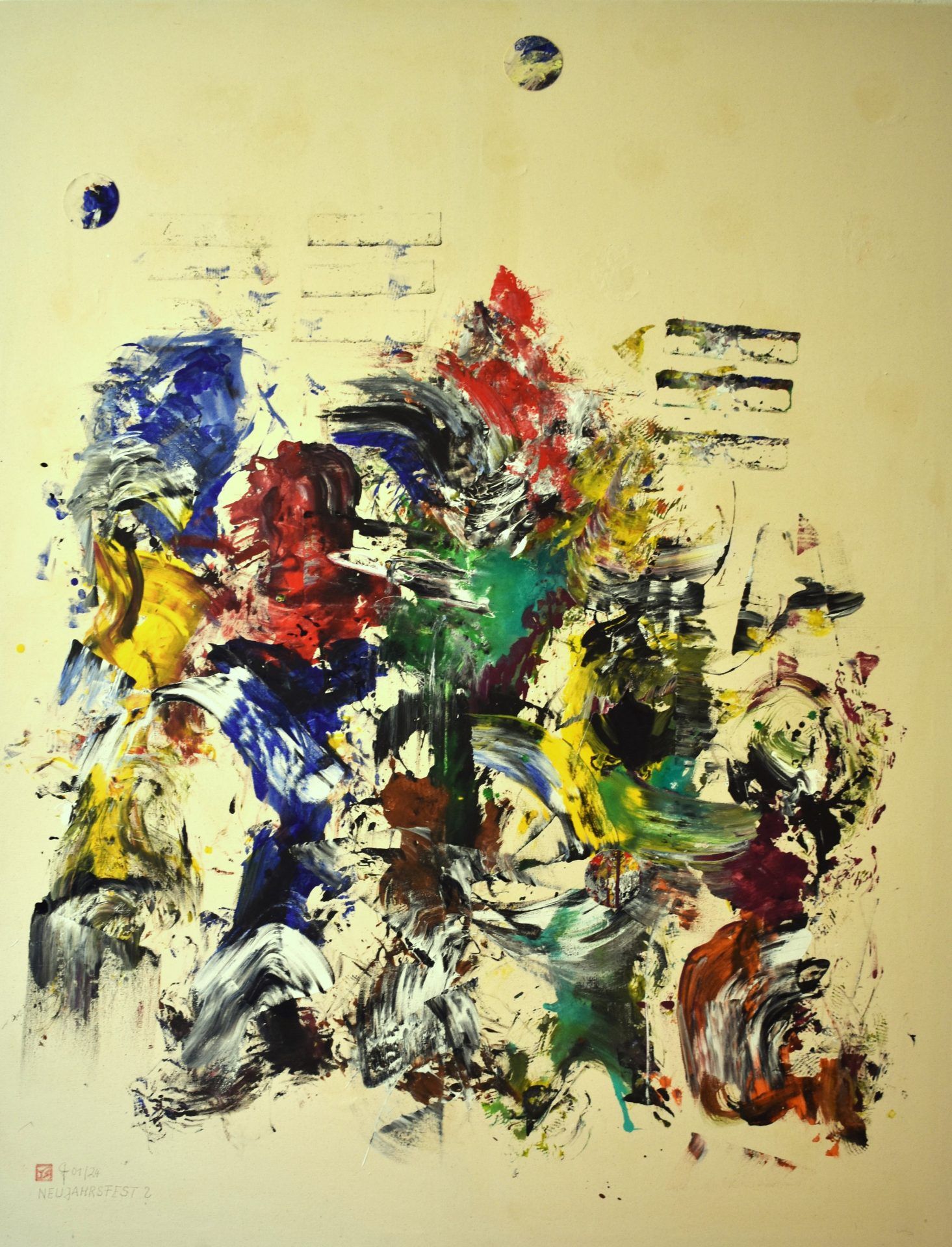 2018 „GE-GELBSUCHT“, Acryl, Acryllack, Chinatusche auf Baumwolle, 170x130cm