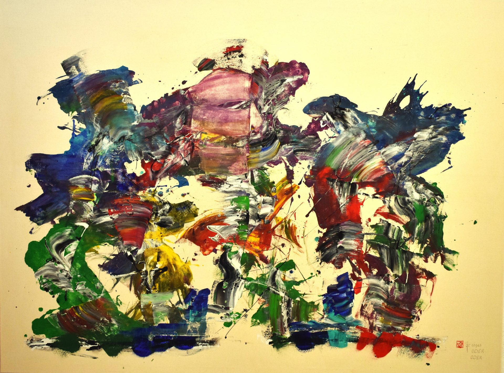 2017: „Katz & Maus“, Acryl, Acryllack, Chinatusche auf Nessel, 180x140cm